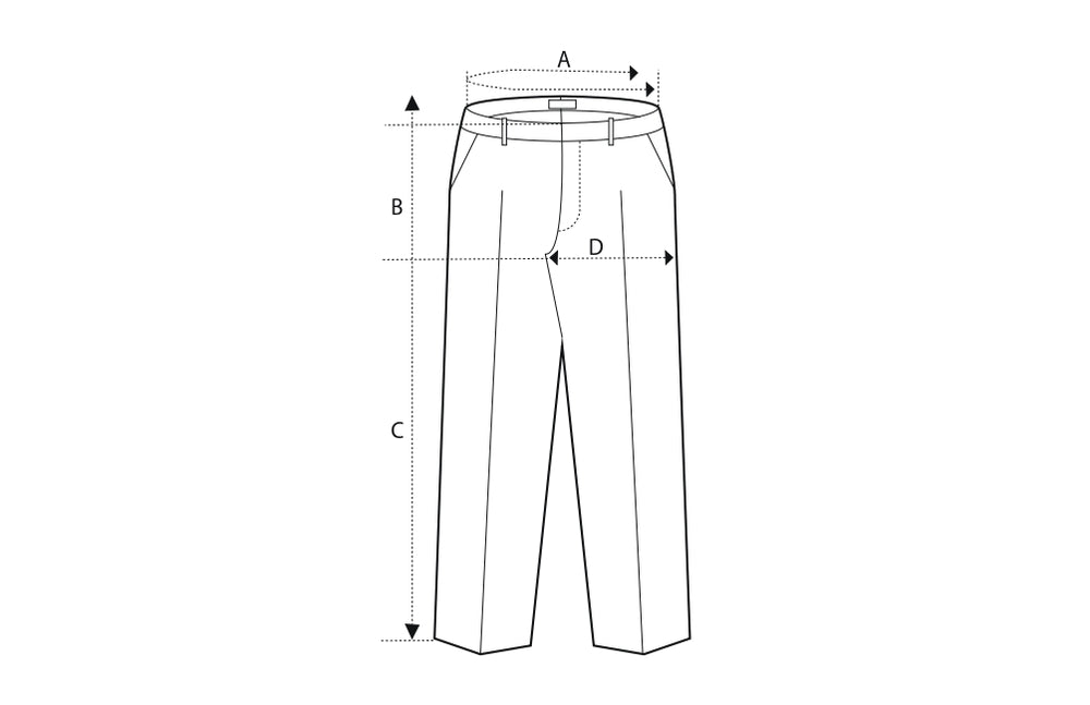 B: Rise. Measurement between waist to the crotch seam.