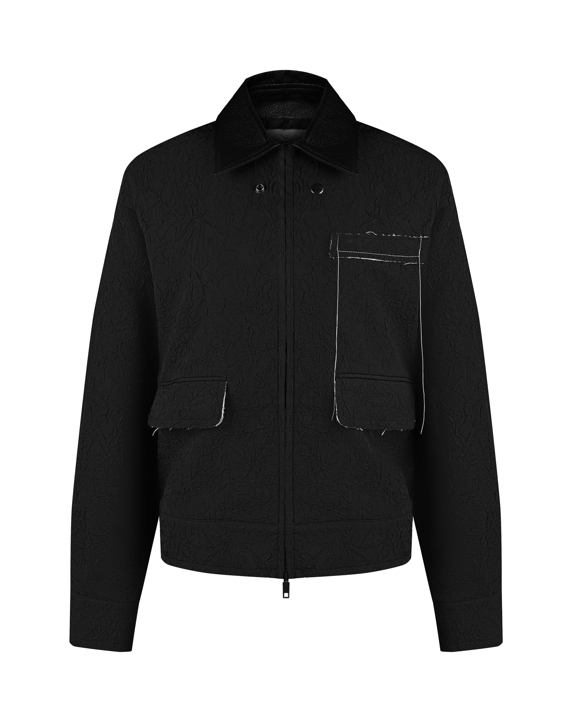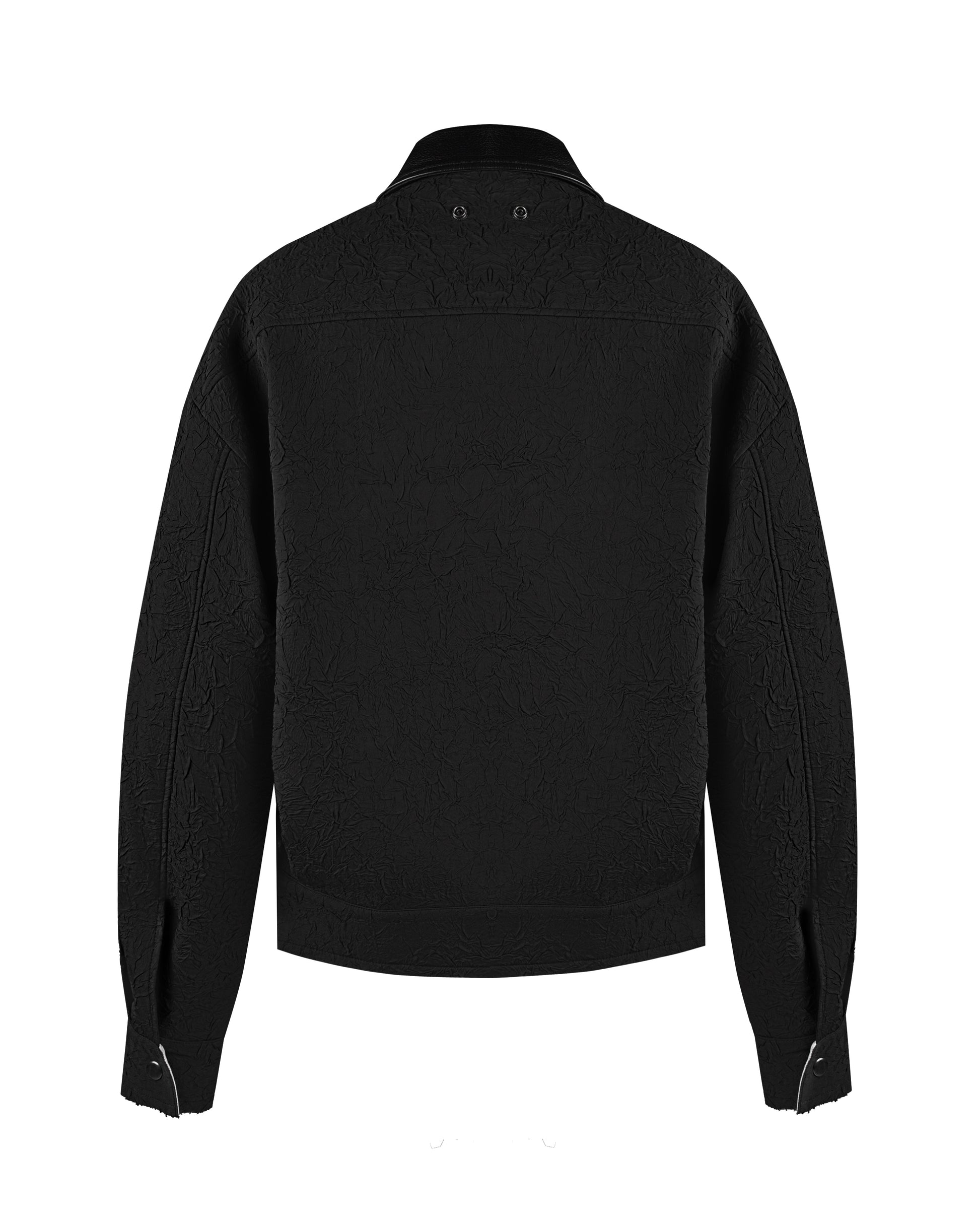 CRINKLED BLOUSON WITH EMBELLISHMENTS AND LEATHER COLLAR