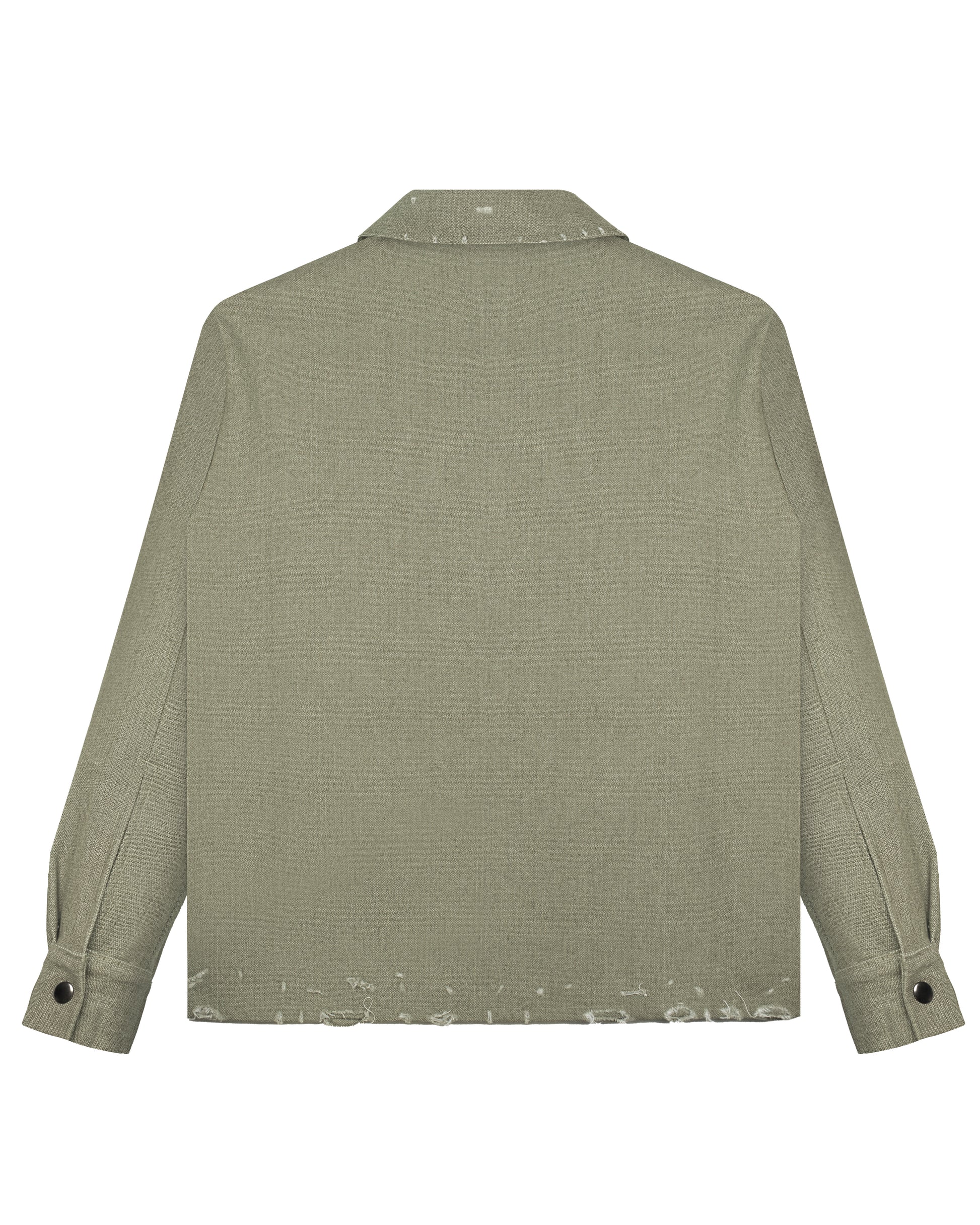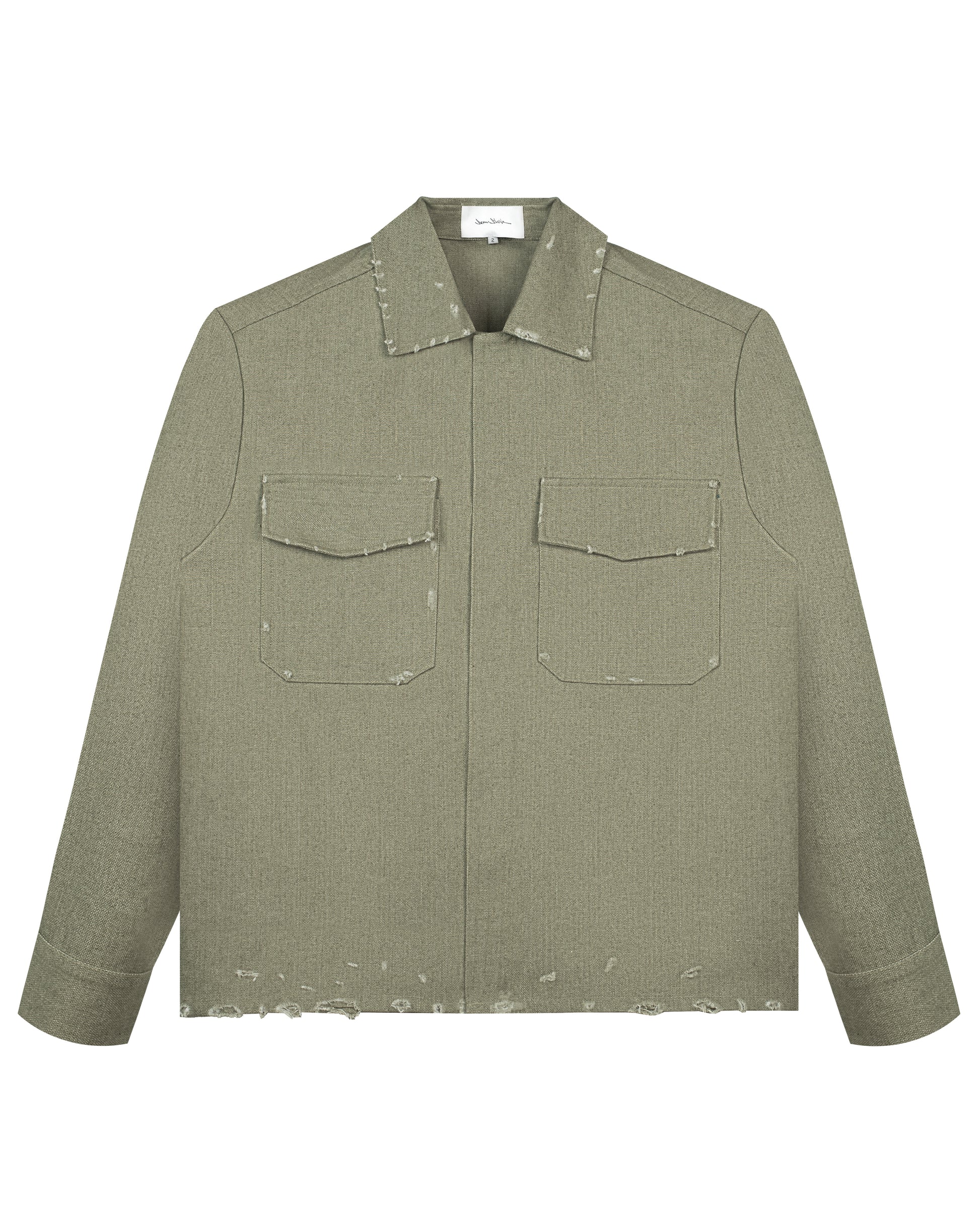 DISTRESSED DENIM SHIRT IN MATCHA GREEN