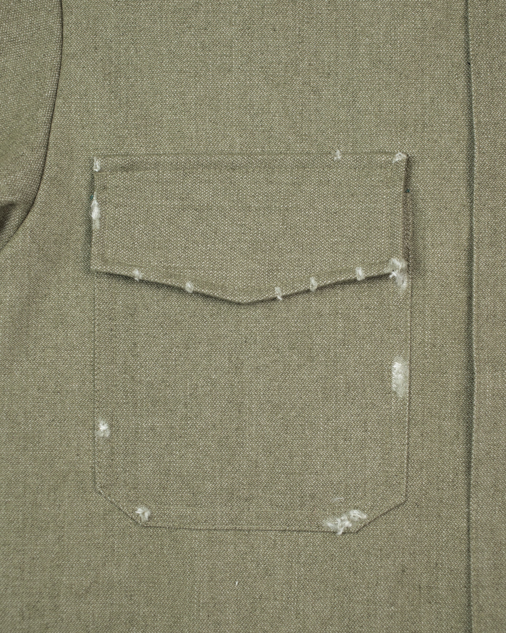 The Distressed Denim Shirt is cut from washed denim in a matcha green tone. Designed with chest pockets, button fastening, and distressed finishing, it is constructed with a boxy fit for layering.