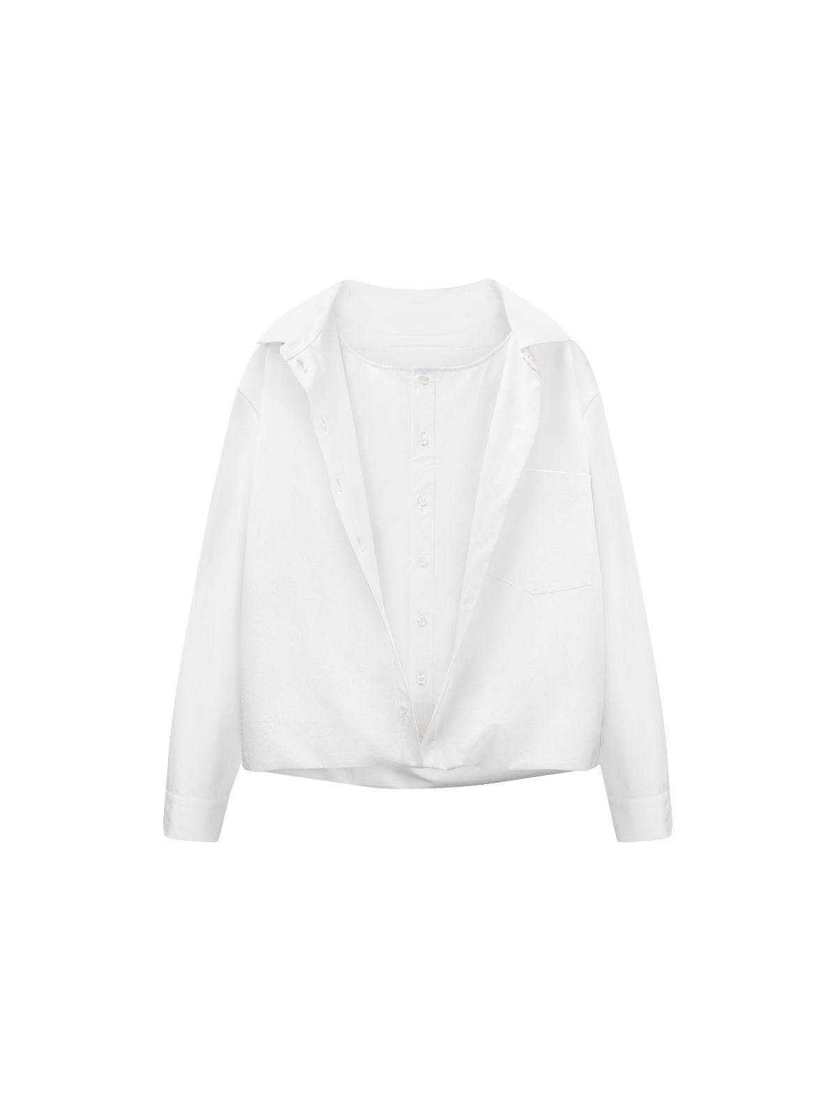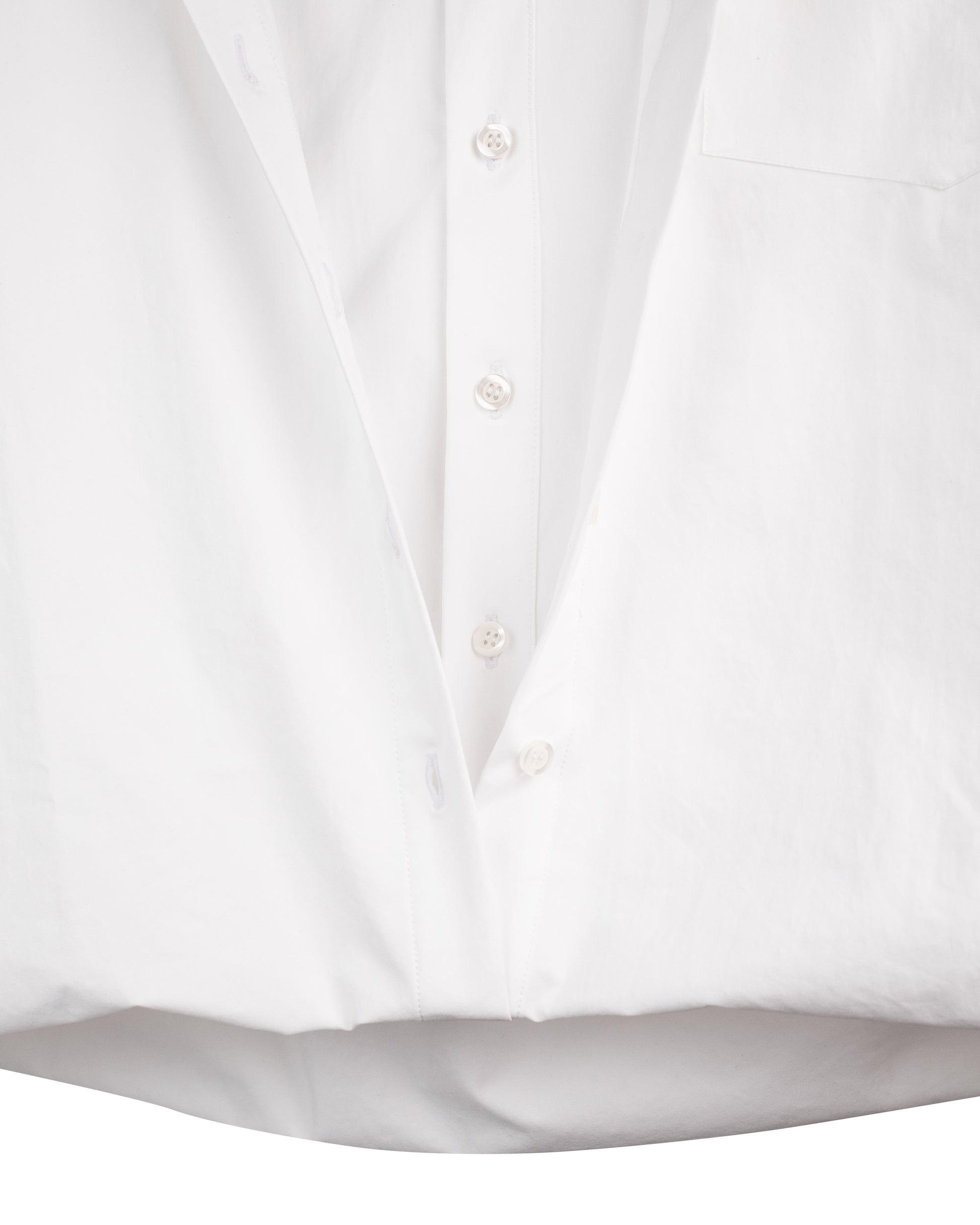 The Origami Tailored Shirt reinterprets classic shirting with a double-layered construction and folded hem detailing. Designed with versatility in mind, it can be styled in multiple ways, offering both structured tailoring and fluid drape.