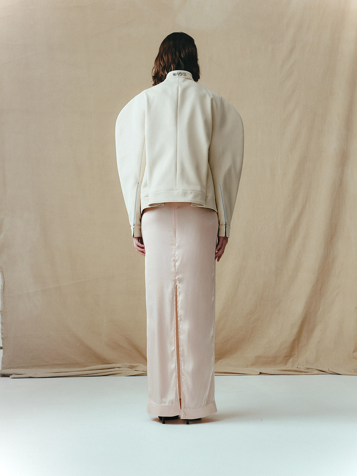 ROUNDED MOTOR JACKET WITH EMBELLISHMENT BUTTONS