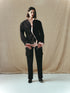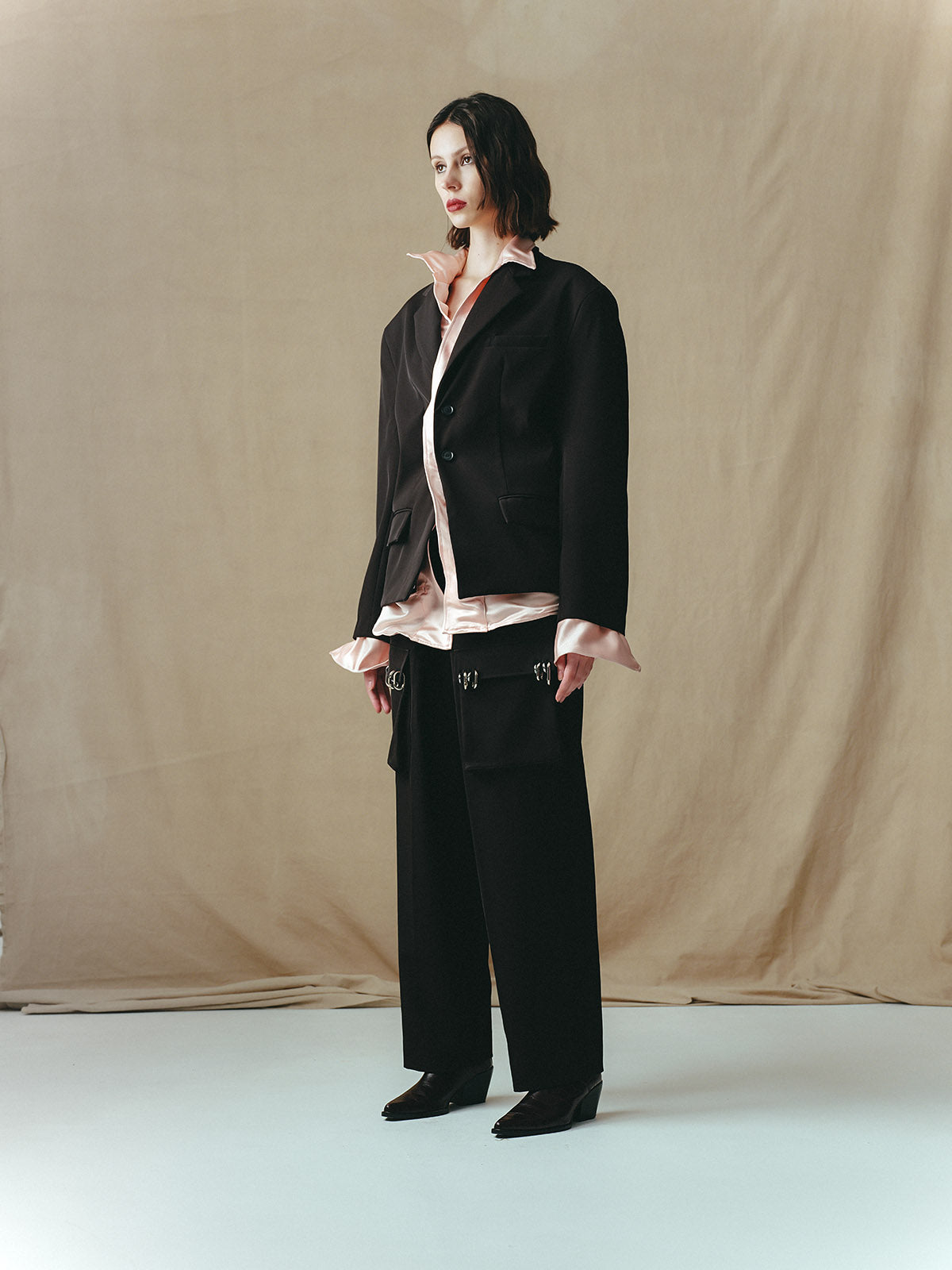 TAILORED SUIT WITH DETACHABLE SATIN DISTRESSED COLLAR